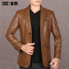 男装秋装2016新款外套商务休闲PU西服男中年皮西装便西修身上衣