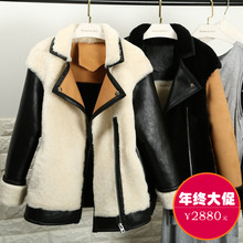 美利奴羊羔毛皮毛一体中长款女款羊剪绒皮草外套女装羊毛皮草大衣
