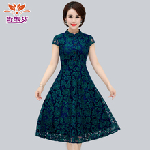 御淑坊妈妈装连衣裙2017夏装新款中老年大码中长款蕾丝女装连衣裙
