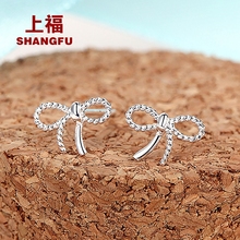 上福S925银耳钉女文艺小清新蝴蝶结耳环日韩甜美银饰配银耳塞