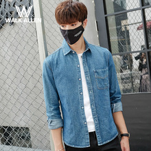 秋装牛仔衬衫男修身青年长袖衬衣韩版学生休闲薄款外套男春秋潮流