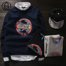 潮牌日系原宿风青少年加肥加大码男装外套长袖套头抓绒加厚卫衣男