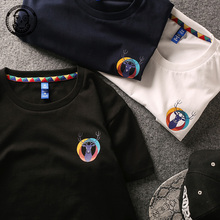 潮牌港风动物鹿头印花短袖男 夏天日系复古青少年加大码圆领t恤衫