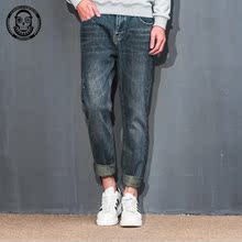 日本潮牌春夏青少年大码胖子牛仔裤韩版修身嘻哈潮男直筒小脚裤男