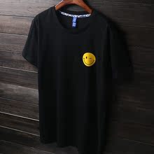 夏季男士短袖T恤学生青少年简约笑脸t恤胖子半袖加肥加大码男上衣