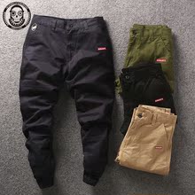 日系复古潮牌裤子束脚休闲裤青少年学生工装裤哈伦小脚铅笔裤子男