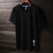 欧美街头街舞十字架短袖T恤 夏季胖子潮男装加大码圆领半袖体恤衫
