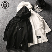 七分袖t恤男宽松夏带帽T恤男短袖韩版学生上衣原宿风青少年衣服潮