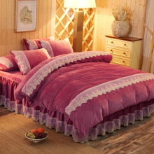 申牟新品 加绒水晶绒夹棉床裙四件套加厚冬季保暖绒床上用品加棉