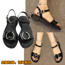 韩国东大门代购女鞋2017新款黑宝石搭扣平底凉鞋一字露趾沙滩鞋