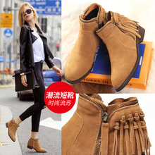 艾斯臣短靴女春秋单靴潮平底侧拉链流苏靴子学生短筒女靴2016年新
