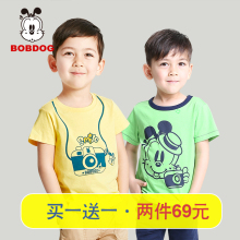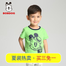 巴布豆童装男童短袖t恤纯棉儿童T恤衫夏装17新款宝宝圆领卡通上衣