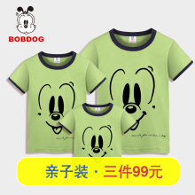 亲子装一家三口夏装家庭装母子装男童短袖T恤纯棉2017新款巴布豆