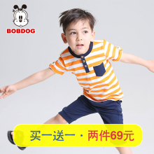 男童短袖套装夏装17新款纯棉两件套儿童条纹套装巴布豆童装3-4岁