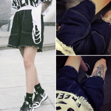 韩国ulzzang街头水原希子同款大口袋毛边阔腿直筒五分短裤牛仔裤