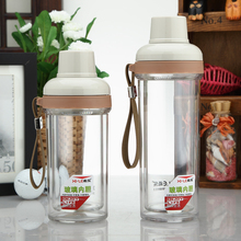 正品希乐塑玻杯玻璃内胆杯子带盖水杯双层创意茶杯透明抗摔400ml
