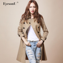EyesonU春秋季新款韩版中长款双排扣风衣女士修身外套1596