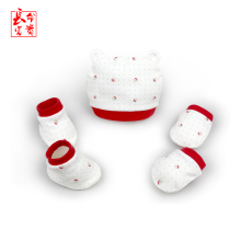 长命富贵婴儿帽子防抓脸手套脚套夏季男女宝宝胎帽新生儿0-3个月