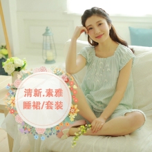 特价夏款小翻领纯棉开衫短袖女宽松大码睡裙睡衣家居服月子服
