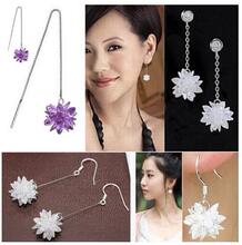 耳环韩国 气质 长款 s925 纯银耳线 韩国防过敏 冰花耳环 耳坠女