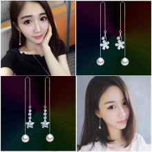 正品新款 925纯银仿珍珠耳线 耳饰 耳坠 耳链 耳环 防过敏 女 包