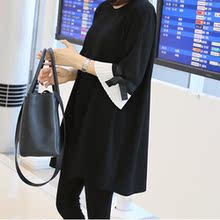 韩国代购孕妇装春夏新棉质优雅纯色棉质宽松T恤衫半身裙两件套装