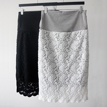 韩国代购孕妇装16秋装棉双层蕾丝雕花裙一步裙包臀托腹半身裙