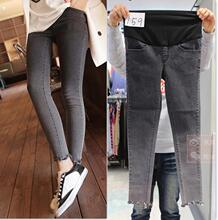 韩国代购孕妇裤17春薄时尚做旧弹力修身孕妇裤牛仔裤小脚铅笔裤