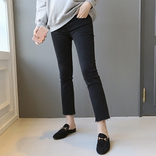 韩国代购孕妇裤17春款流苏牛仔裤脚牛仔棉孕妇托腹牛仔小脚裤