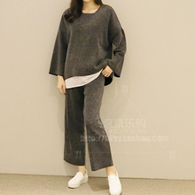 京京韩国代购孕妇装17春秋长袖哺乳上衣阔腿长裤2件哺乳套装