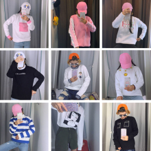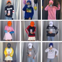 韩国秋冬原宿新款宽松百搭女学生刺绣恶搞笑脸闺蜜圆领长袖上衣潮