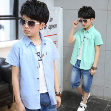 童装男童夏装2017新款韩版纯棉衬衫中大童儿童夏季短袖上衣衬衣潮