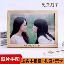 照片拼图定制送实木相框刻字 diy印相片拼图制作创意生日礼物