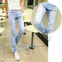 紧身牛仔裤型男韩版潮修身磨破洞乞丐小脚裤弹力显瘦铅笔裤秋冬款