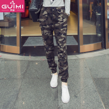 春夏少女街头松紧腰宽松休闲女裤迷彩哈伦裤学生收脚运动小脚长裤