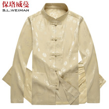 保珞威蔓2017新唐装男长袖套装中老年人中国风男装爷爷春秋装衣服