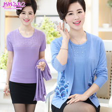 2016新款春季中老年妈妈装时尚钉珠真两件套大码中年妇女装针织衫