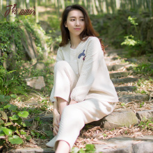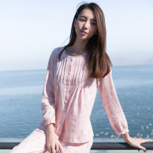 顶瓜瓜顶呱呱纯棉睡衣女士春夏薄款空调房长袖家居服对襟全棉套装
