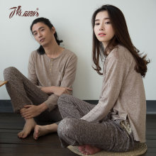 顶瓜瓜彩棉男女士情侣款春秋季亚麻长袖休闲家居服睡衣套装顶呱呱