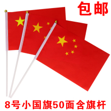 50面装8号中国小国旗手摇旗14*21五星小红旗手挥旗子带杆30CM包邮