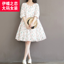 加大码女装春夏装新款200斤 胖MM文艺风中长款碎花宽松显瘦连衣裙