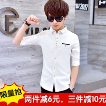青少年15-16-17岁中袖衬衫男孩高中学生13春装男大童七分袖衬衫衣