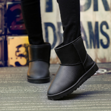2016冬季特大码雪地靴女短筒靴情侣皮面女40-43平底加厚棉鞋41 42