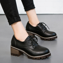 秋冬季女鞋高跟粗跟防水台单鞋真皮中跟马丁靴女短靴百搭休闲皮鞋