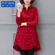 大码春装女胖mm2017新款宽松加大印花长袖衬衫200斤显瘦上衣韩版