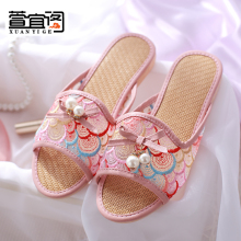 萱宜阁开口露趾亚麻女士凉拖鞋夏季亚草室内厚底防滑居家用春秋款