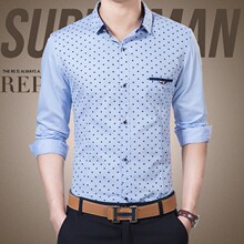 春季新款男士长袖衬衫韩版修身时尚百搭印花衬衣男青年潮款打底衫