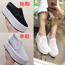 2017夏季新款女鞋真皮网鞋透气松糕底白色厚底内增高休闲单鞋潮