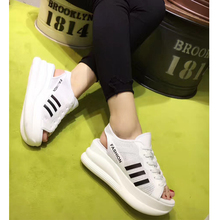 2017夏季新款女鞋弹力布透气字母百搭运动休闲鞋厚底磨术贴女凉鞋