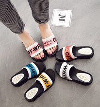 2017夏季新款真皮凉拖鞋女厚底松糕凉拖拼色织带凉拖一字型女凉拖